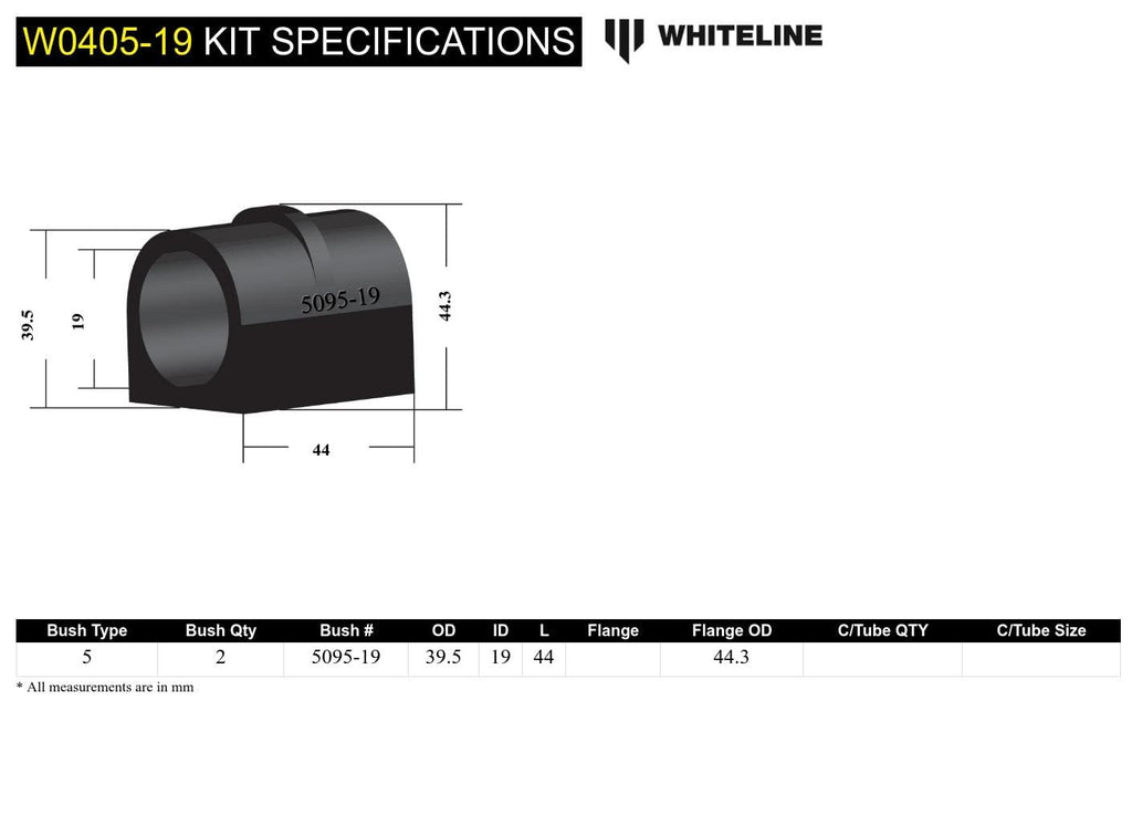 Front Sway Bar Mount - Bushing Kit 19mm to Suit Subaru Forester, Impreza and Liberty