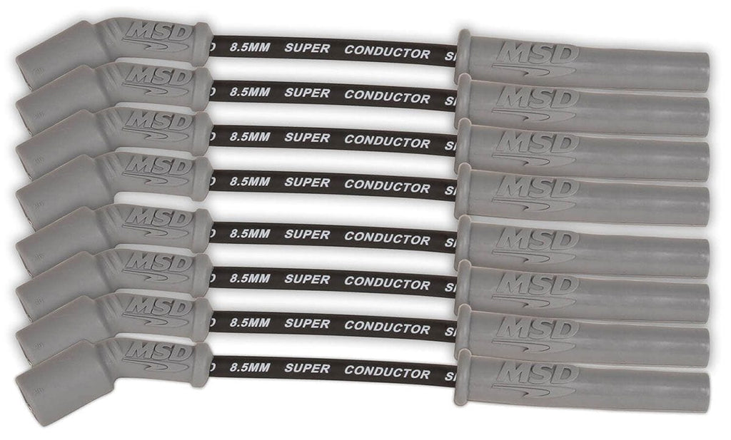 Super Conductor Spark Plug Lead Set8.5mm, Black Suit Chev GEN VLT1/LT4Brand: MSDPart Number: MSD33823Description: Engineered from the inside out, the 8.5 offers everythingyou have ever wanted in a wire; incredibly low resistance without electronic interference! In a single 12 inch length of Super ConductorWire there is only 40 - 50 ohms of resistance! That is the lowest resistance of any helically wound wire.