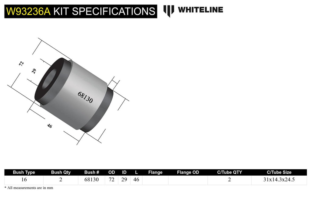 Rear Differential Mount - Front Bushing Kit to Suit Ford Falcon/Fairlane BA-FGX, Territory SX-SZ and FPV
