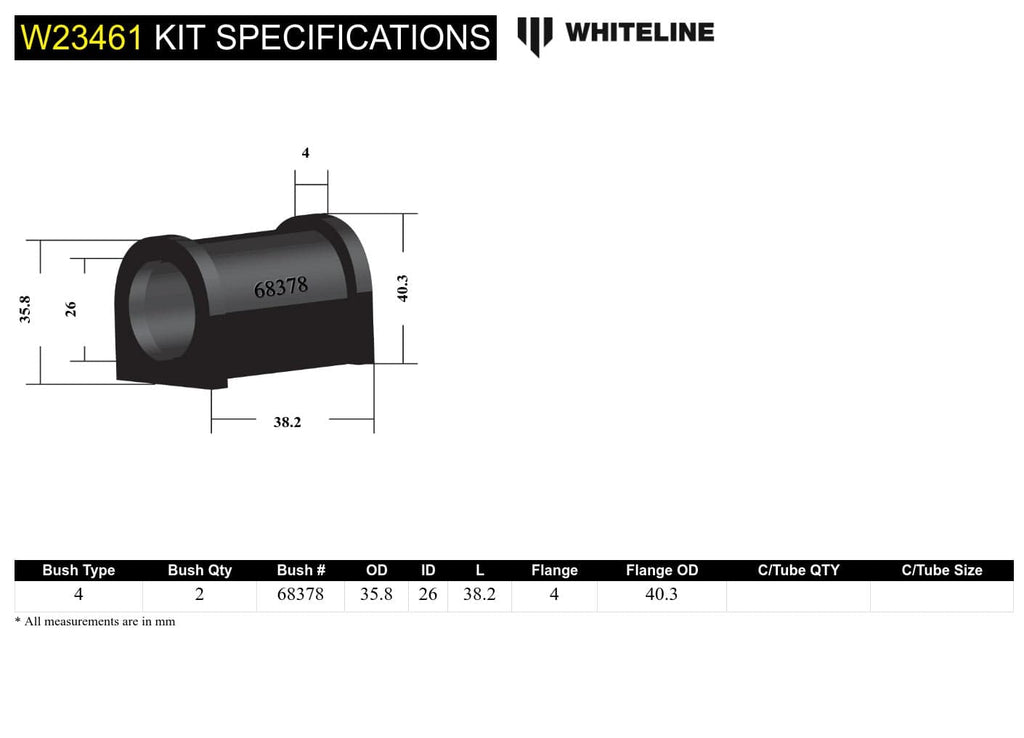 Rear Sway Bar Mount - Bushing Kit 26mm to Suit Mitsubishi Challenger and Pajero